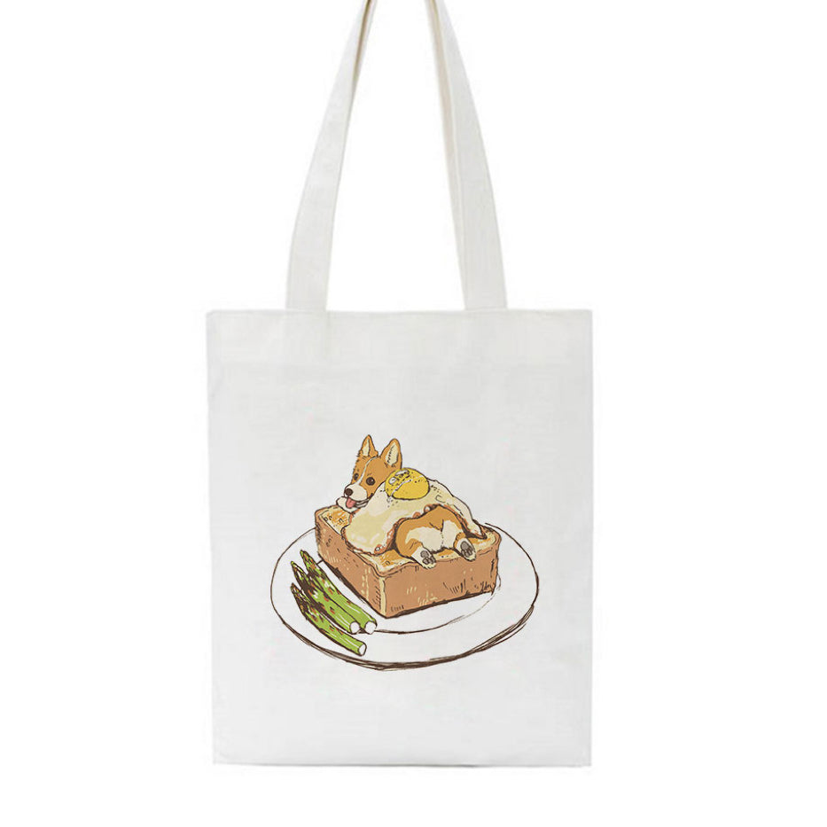Cute Printed Bag Corgi Sandwich Canvas Bag
