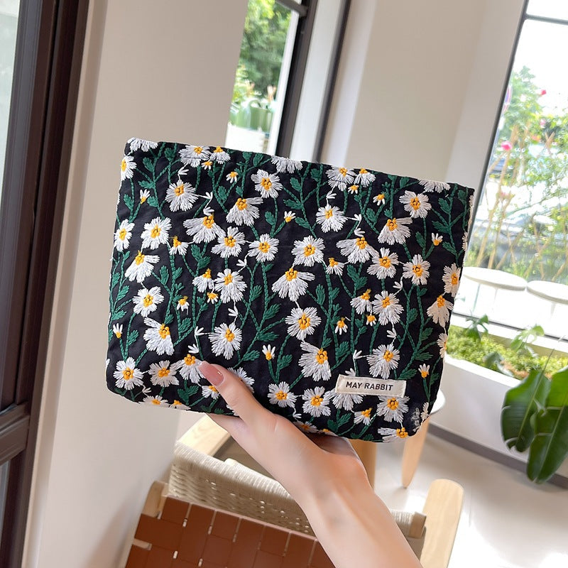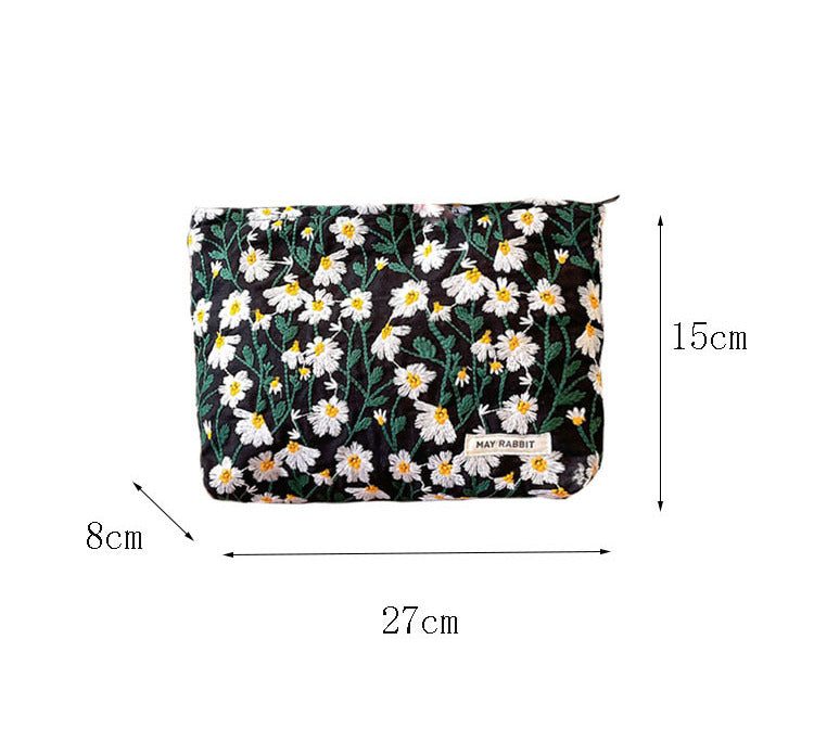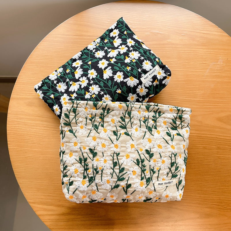 White Daisy Makeup Bag within Black